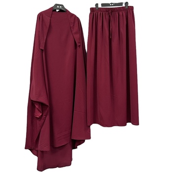 TikTok Fashion Women's Two Piece Set Long Dress Middle Eastern Robe Set Solid Color Dress